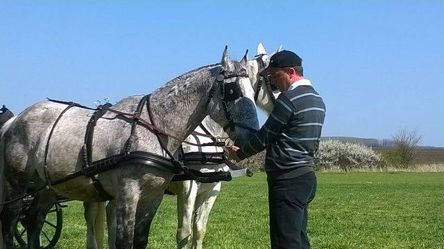 A délelőtti programot ízletes ebéd zárta, majd a gyakorlati bemutató következett. Itt Papp János, a Mezőhegyesi Ménes SE hajtója, pályaépítő vette át a programvezetést, irányításával a megjelent 5 fogat a gyakorlatban is bemutatta hogyan néz ki a felkészülés.
