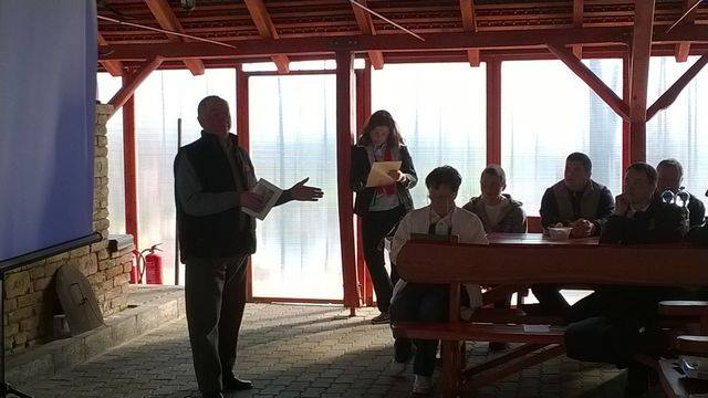 A program elméleti résszel kezdődött. Előadó Fülöp Sándor, négyesfogathajtó világbajnok, aki több szálon is Békés megyei kötődésű. Bevezetőként rövid élménybeszámolóban hasonlította össze a 40 évvel ezelőtti és a mai fogathajtást. A sportág óriási változáson ment át ez idő alatt. 1967-ben kezdtem versenyezni, azóta követem a szabály változásokat – kezdte mondandóját. Az 1971-es budapesti EB versenyszámairól – állóbírálat, díjhajtás, maratonhajtás, akadályhajtás – több érdekességet is elmondott. Így például, hogy cseréplécekből készült akadályok között hajtottak, hogy 5 szakaszos volt a maraton, hogy egyszerűbb volt a díjhajtó feladat és az állóbírálat is nagyban beszámított a végeredménybe. Ezt követően elsősorban az akadályhajtásra való felkészülés lépéseit ismertette, hiszen a jelenlévők szinte kizárólag ebben a versenyszámban érdekeltek. Nyomatékosan felhívta a figyelmet az egyszerű díjhajtó feladatok gyakorlásának fontosságára, a hajlékonyság, a szárral való irányítás elérése a cél, hiszen ez alapja a pályán való jó teljesítésnek. A holland és német példa is ezt támasztja alá, sikereik titka részben itt keresendő. Következőkben részletesen beszélt a fogat összeállítás szempontjairól, a lovakkal szembeni követelményekről, a fiatal lovak betanításának feladatairól. A fogat lovak kiválasztásának első szempontjairól is szólt. Ránézésre legyen megnyerő, nagyságban, egységes mozgásban egy pár legyen, ne legyen leskelődős, csiklandós, viszont legyen együttműködő a képzési foknak megfelelően. A fajta nem szempont, minden fajta alkalmas, csak a képzéstől függ. Fontos viszont a kora, hiszen nemcsak a szabály miatt kell megfelelő korban (C kategóriában 4 éves) kezdeni velük a versenyzést, hanem azért is, mert a fiatal ló könnyen károsodhat fizikailag és agyilag is, nem érdemes kockáztatni, hiszen ízületi problémák, sántaság is felléphet. – zárta ezt a gondolatsort. Majd részletesen szólt a fiatal lovak betanításának lépésről lépésre történő mozzanatairól: kivezetés a karámba, futószárazás, sportkantár használat célszerűsége, heveder használat, két futószár alkalmazása, csúszóba fogás. Külön felhívta a figyelmet, hogy a betanítás nem felesleges időtöltés, hanem a cél érdekében nagyon fontos tevékenység. Ezt követően a versenyidőszak kezdeti teendőiről beszélt, itt is a fokozatosságot emelte ki, a téli pihenő után célszerű, hogy fizikailag, agyilag is regenerálódjanak a lovak, lehetőleg minden nap mozogjanak. Ezután kezdődhet a futószárazás, amit meg kell tanulni, mert csak megfelelő hozzáértéssel éri el a célját. A megfelelő kondíció, forma elérése után következzen a gyakorlás, körön ügetni, szlalomot hajtani, de ne időre és ne egész pályát, fontos elérni az ellazulást, a hajlékonyságot.