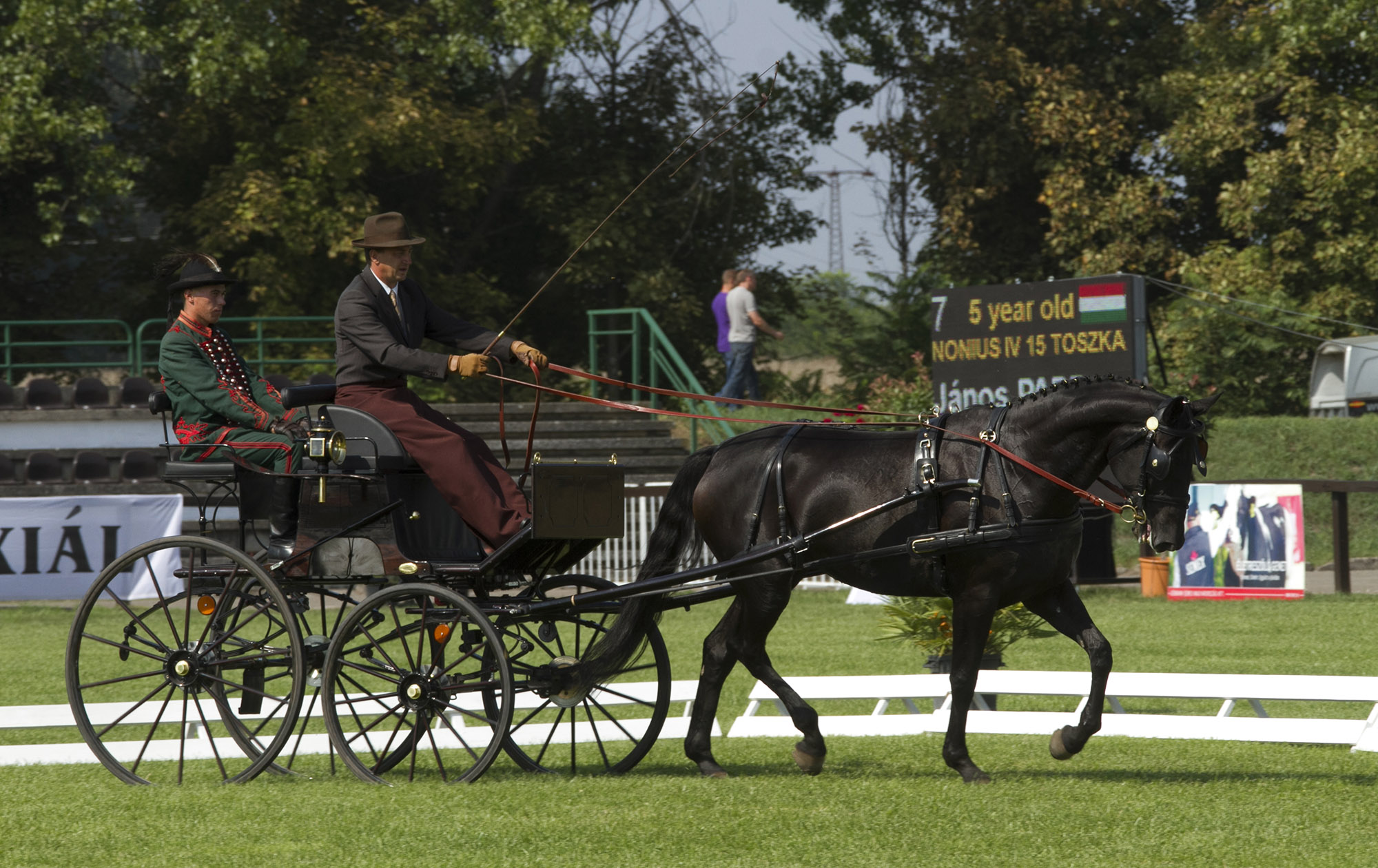 A mezőhegyesi világbajnokságra 9 nemzet 38 lova érkezett. Csütörtökön az öt- és hatéves lovaké volt a főszerep. A mezőhegyesi NONIUS IV 15 TOSZKA is ma mutatta be programját, hajtója Papp János.