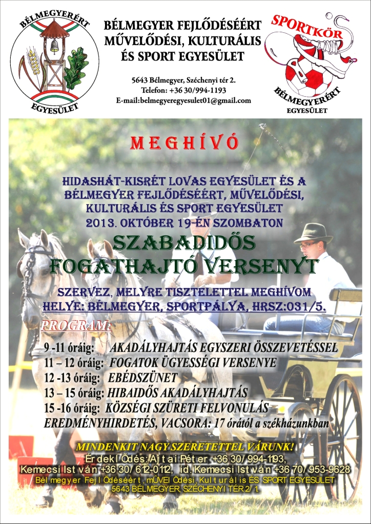 VERSENYKIÍRÁS A BÉLMEGYERI SZABADIDŐS FOGATHAJTÓ VERSENY EGYES és KETTES FOGATOK RÉSZÉRE