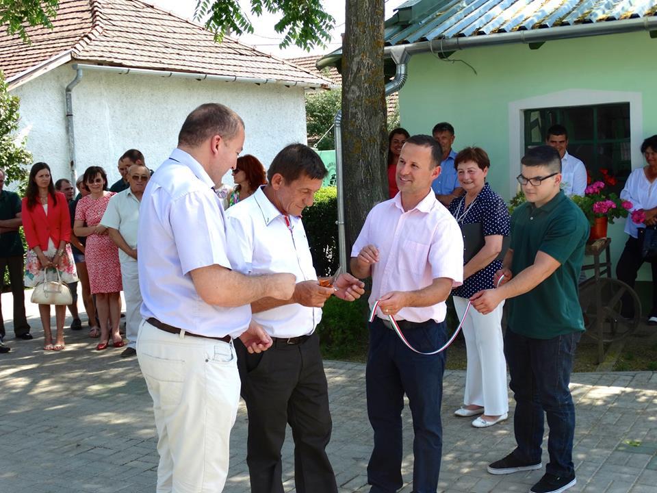 Majd a tulajdonos, Galambos Sándorral együtt átvágták a nemzeti színű szalagot, jelképesen átadva a megújult létesítményt a kollektívának.