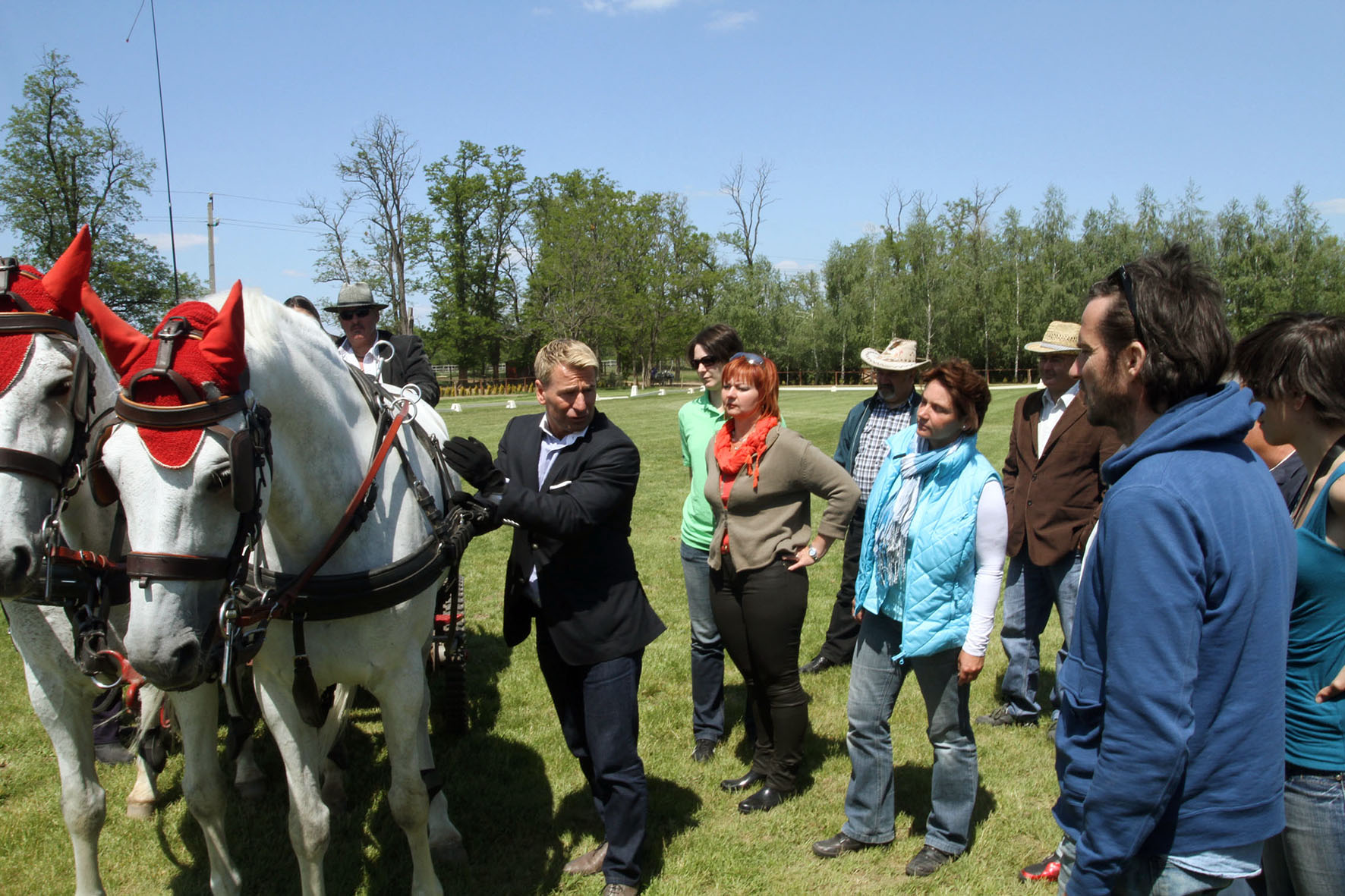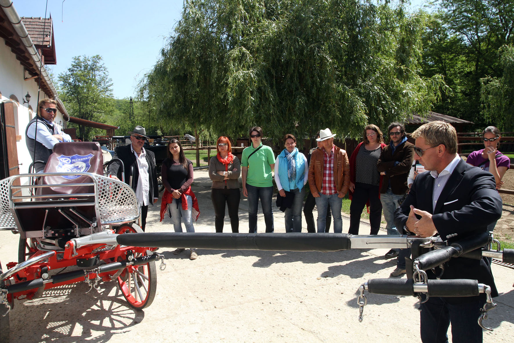 Lázár Vilmos kilencszeres és Lázár Zoltán hétszeres világbajnok egyetemi lovas tanárok a fogathajtás gyakorlati mesterfogásait oktatják